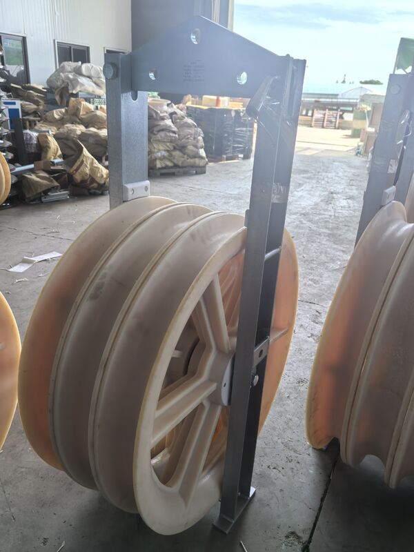 Constructed with a high-quality MC nylon sheave paired with a galvanized steel frame, the pulley ensures exceptional corrosion resistance and a long service life, even in demanding outdoor construction environments. Furthermore, it is equipped with high-performance bearings that guarantee smooth sheave rotation, thereby minimizing friction between the pulley and the conductor.